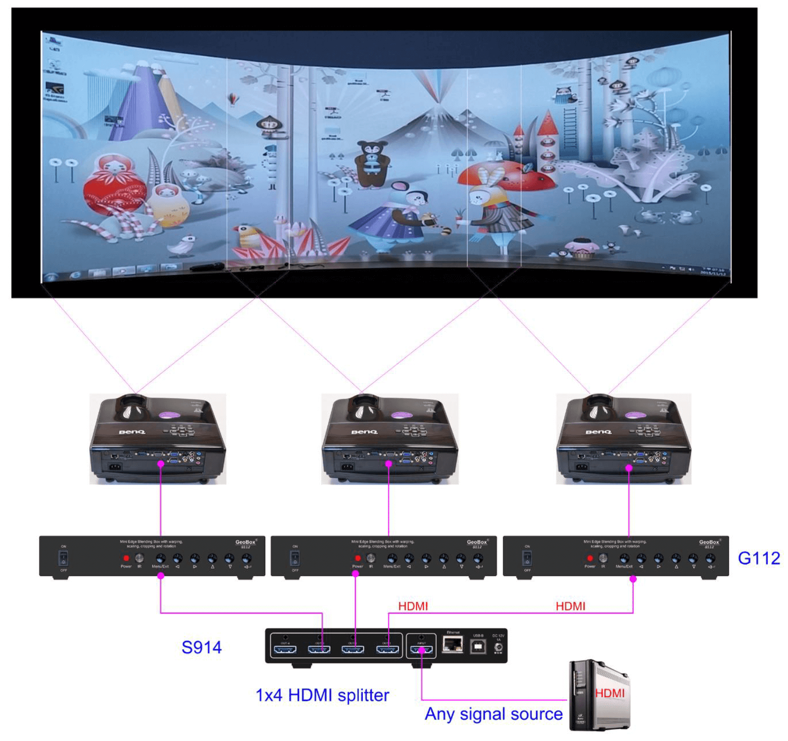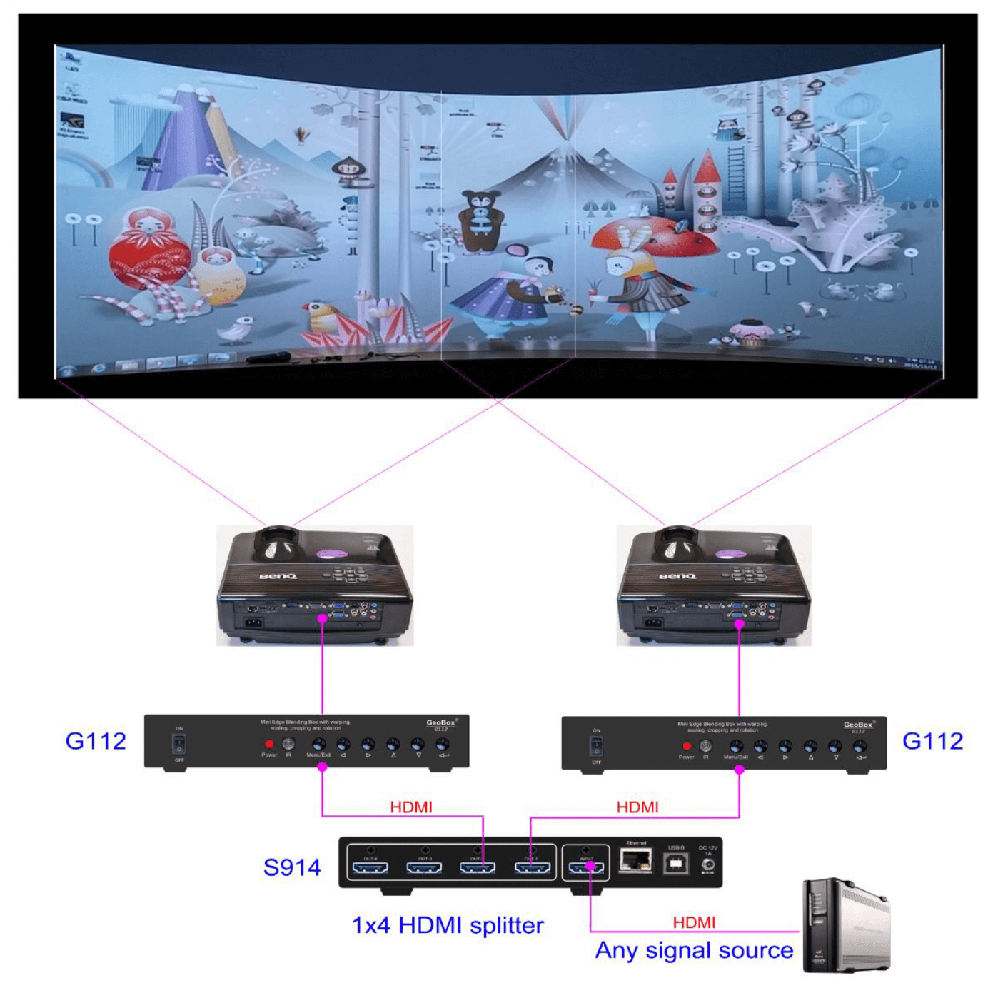 Works with HDMI splitter and multiple G112 units