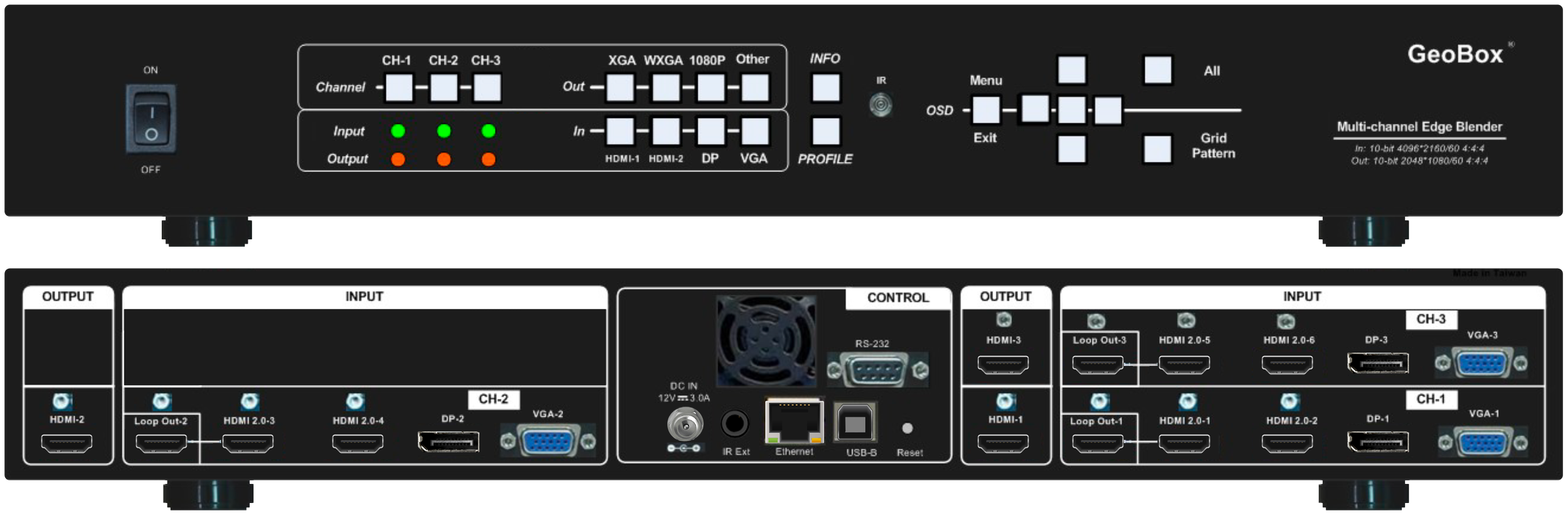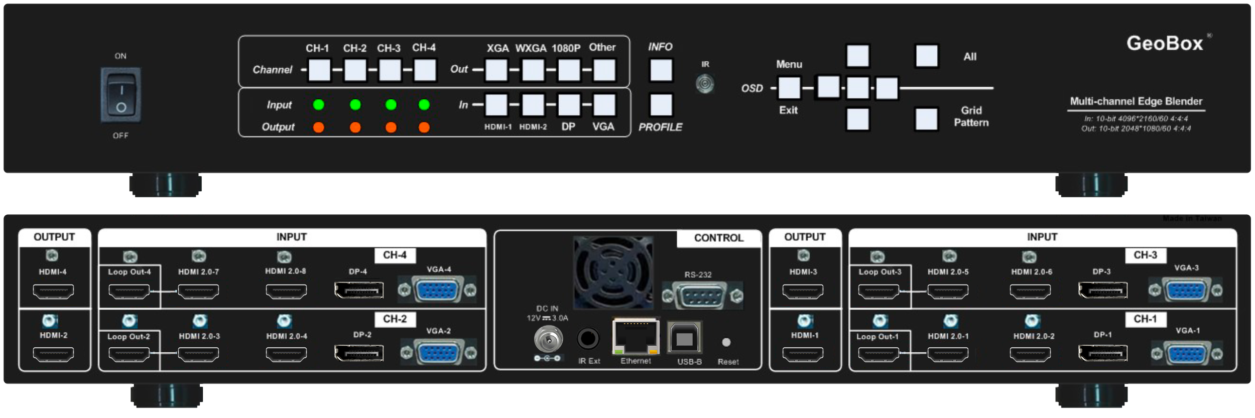 4K in/2k out Edge Blending & Projection Mapping Processor with 2x HDMI, 1x DP, 1x VGA in per Channel