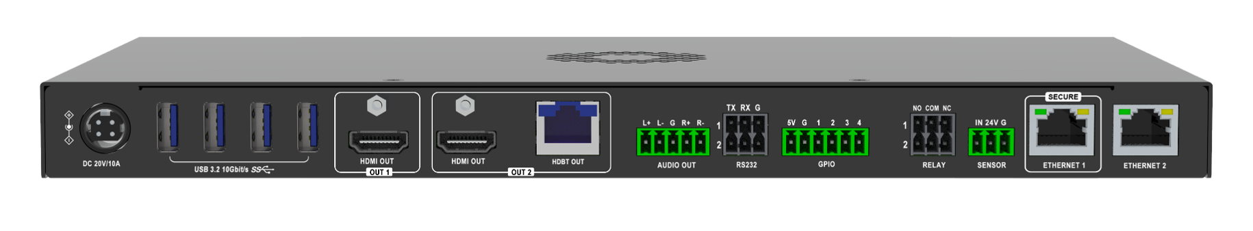 Comprehensive Connectivity: The switcher provides 4 USB 3.2 device ports for connecting conference equipment like cameras and speakerphones, ensuring seamless integration with essential conference peripherals. Additionally, it offers a balanced audio de-embedding port for connecting audio equipment.