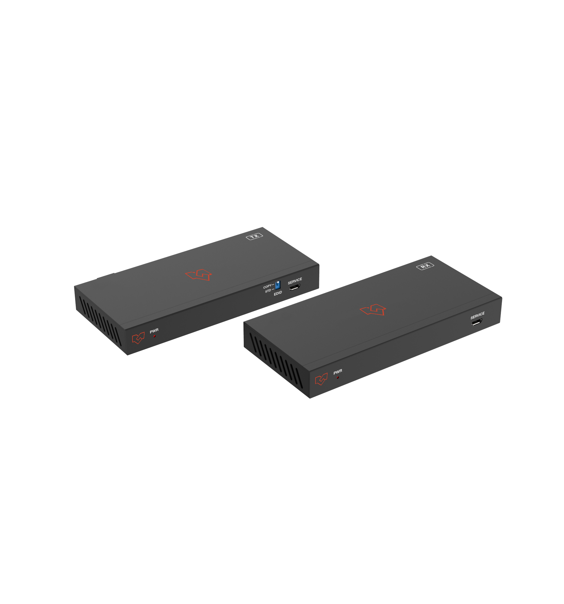 | Transmitter | Inputs: 1 × HDMI IN [Type A, 19-pin female] Outputs: 1×HDMI OUT [RJ45] 1×CAT OUT [RJ45] Controls: 1×SERVICE [Micro-USB jack] 1×IR IN [3.5mm Stereo Mini-jack] 1×IR OUT [3.5mm Stereo Mini-jack] | ||