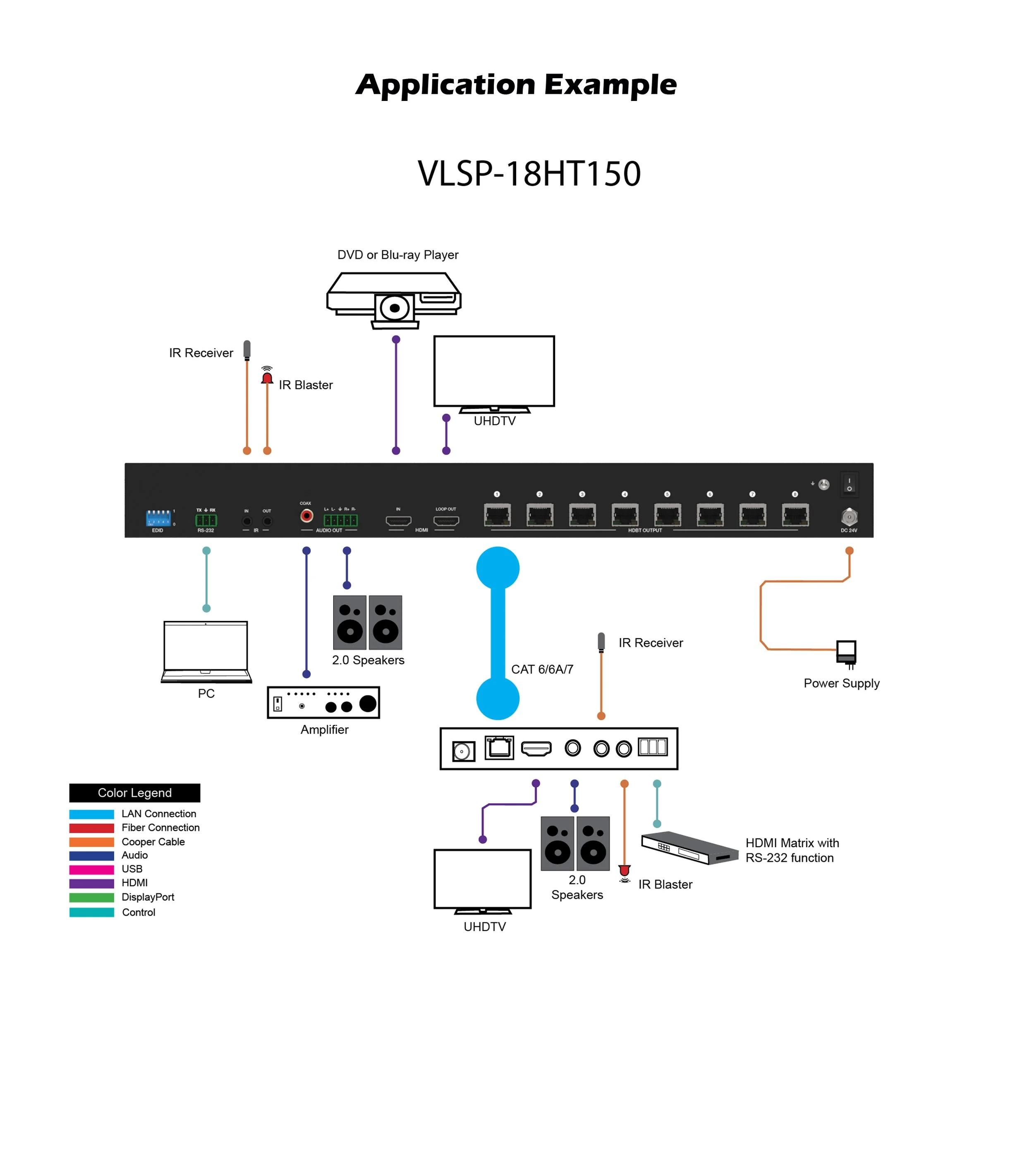 Engineered for reliability and scalability, the VLSP-18HT150 is the ideal solution for conference rooms, digital signage, control centers, and any installation requiring robust, long-distance HDMI distribution.