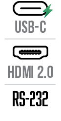 1x USB-C Outputs: 1x HDBaseT Out [RJ45, 8-pin female] 1x USB-C (only for charging) Controls: 1x RS-232 [3-pin phoenix connector] 1x FW [Micro USB, Update port] |